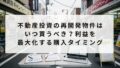 不動産投資不動産投資の再開発物件はいつ買うべき?利益を最大化する購入タイミング この記事では、再開発物件がもたらす価値向上や投資家が注目する理由を解説し、初期段階、建設中、完成後といった各フェーズでの購入判断基準を詳細に提示します。 2026.02.27不動産投資再開発