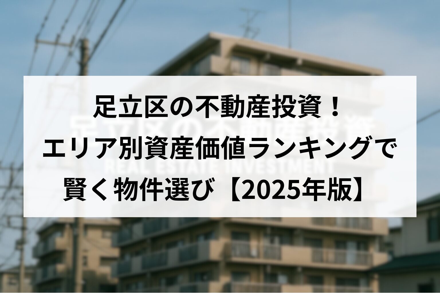 この記事を読めば、足立区内でどのエリアに投資するのが最適か、データに基づいた判断材料を得ることができます。