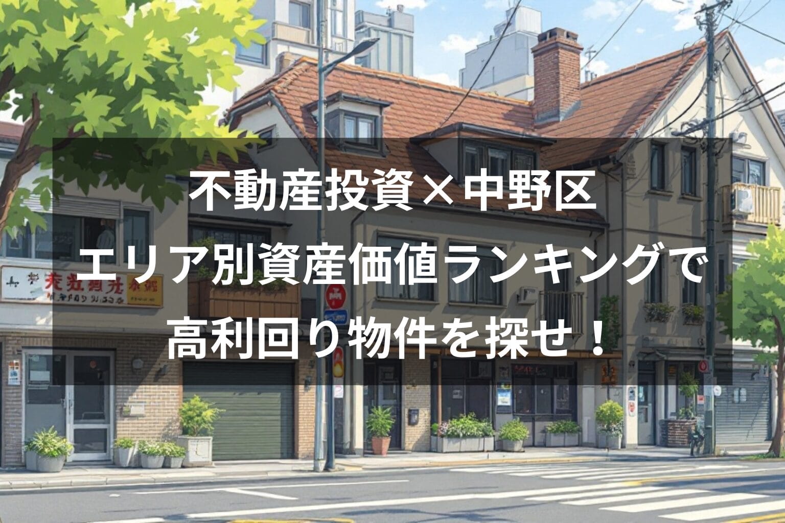 中野駅周辺、東中野駅周辺、新中野駅周辺、沼袋駅周辺、鷺ノ宮駅周辺それぞれの資産価値を左右する要因を紐解き、高利回り物件を見つけるためのポイント、エリア選定における注意点、成功の秘訣を伝授。